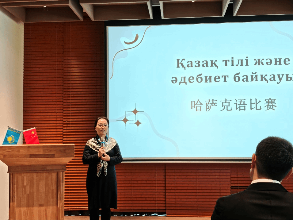 哈萨克斯坦研究中心主任孙芳教授、哈萨克语教师谢维宁博士出席“哈萨克语与文学”比赛。作为受邀嘉宾孙芳主任为比赛致辞并介绍北京外国语大学的哈萨克语学科建设情况,谢维宁老师受邀担任本届比赛评委。